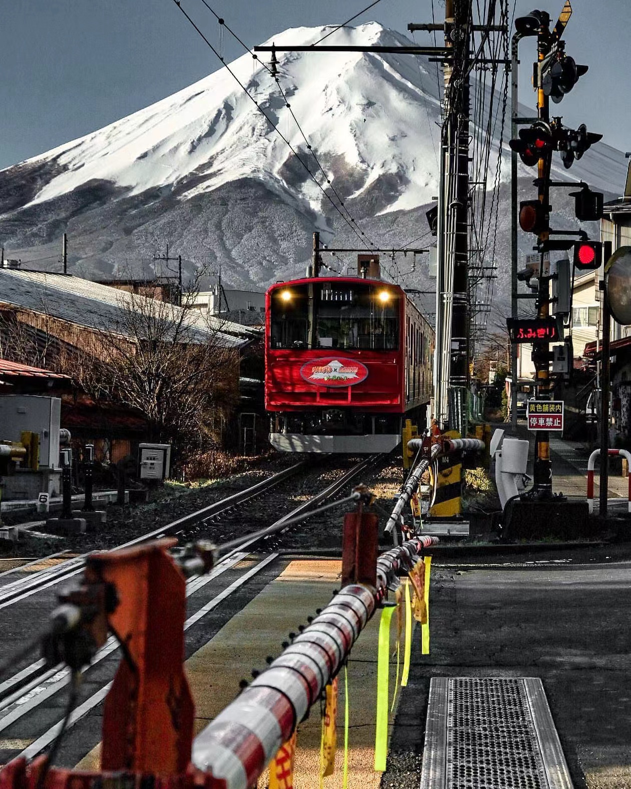 駅舎は有名建築家・隈研吾氏によってデザインされており、駅名標には大きく「富士山」の文字、英語では Fujisan Station と表記されています。フィルターいらずで、写真を撮るだけで「本当に来た!」という実感が湧くスポットです。多くの旅行者が駅名標の横に立ち、背後にそびえる富士山を背景に“きちんとした記念写真”を撮影します。