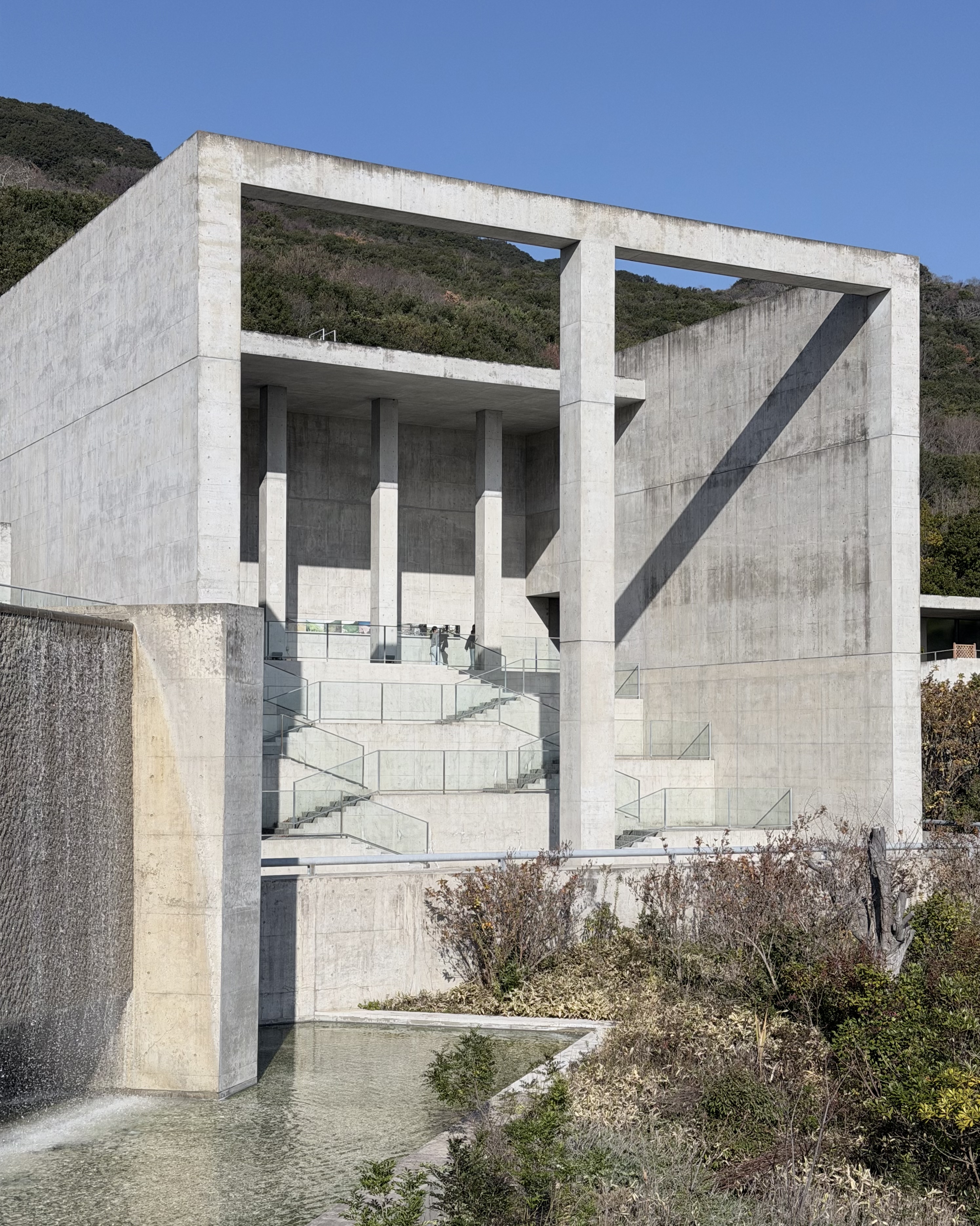 淡路夢舞台は、世界的建築家・安藤忠雄氏が設計した複合施設で、大阪湾を望む丘陵地に位置しています。光と影、そして自然との調和をコンセプトに、水のテラスや百段苑、温室「奇跡の星の植物館」など多彩な空間が広がります。建築美と豊かな自然が共存する淡路島を代表する観光スポットとして、多くの訪問者を魅了しています。