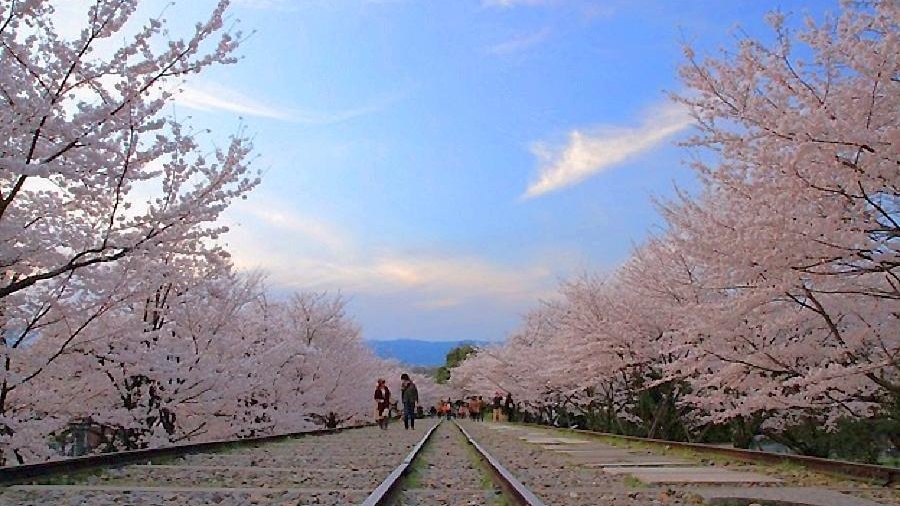 蹴上インクラインは、かつて琵琶湖疏水の急斜面で船を運搬するために設置された鉄道遺構であり、京都の近代化を支えた産業遺産です。 現在は線路跡が遊歩道として開放されており、春になると線路の両脇に咲き誇る桜がアーチのように広がります。歴史ある鉄路と淡い桜が織りなす独特の景観は、京都でも屈指の人気を誇るお花見スポットです。ノスタルジックな雰囲気の中、線路の上を歩きながら優雅な春のひとときをお過ごしください。