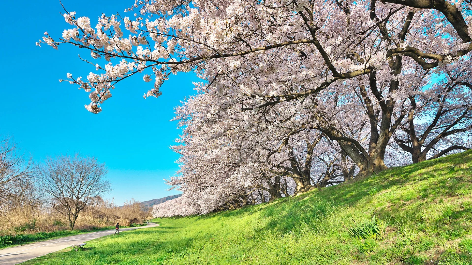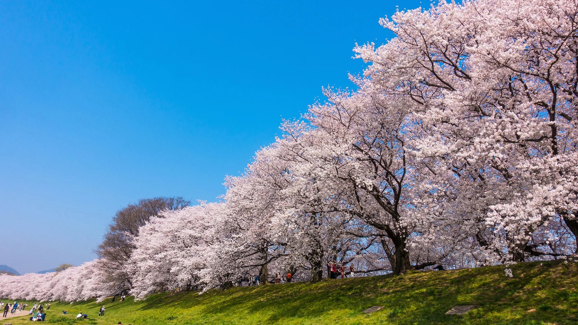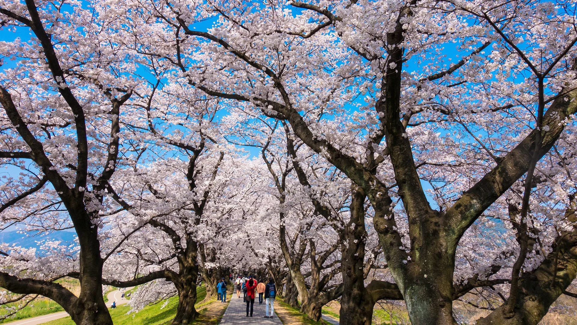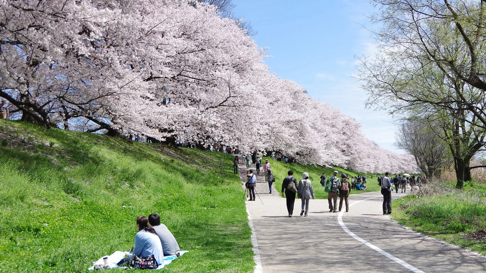 関西屈指の桜の名所として知られています。木津川と宇治川を分ける全長約1.4kmの堤防に、約220本のソメイヨシノが咲き誇ります。満開時には桜が空を覆い尽くし、圧巻の「桜のトンネル」が出現します。