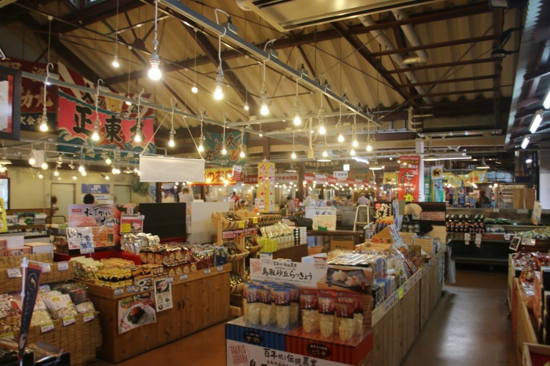 鳥取港の「賀露市場」では、鳥取・賀露港でとれた新鮮な海産物や地元の農産物・特産品が手に入ります。市場は港から徒歩2分で、商店エリアでは海鮮を買って自宅で調理したり、レストランに持ち込んでその場で料理してもらうこともできます。