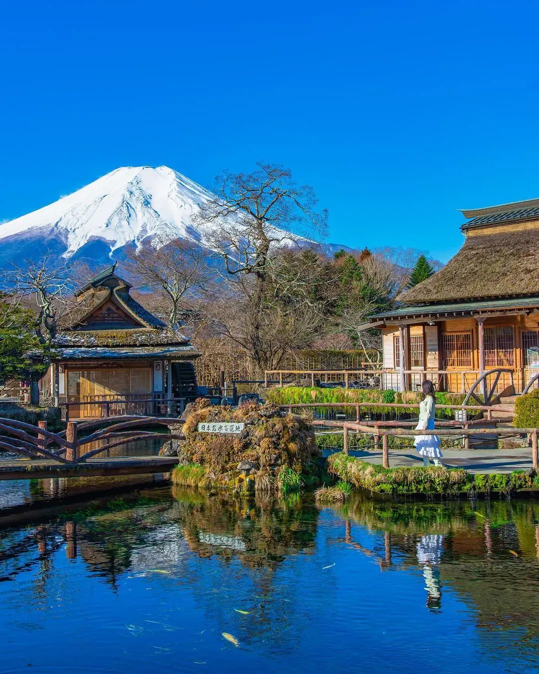 澄み切った池の水と雄大な富士山が一体となった風景は、数多くの写真家を魅了する絶景として知られています。