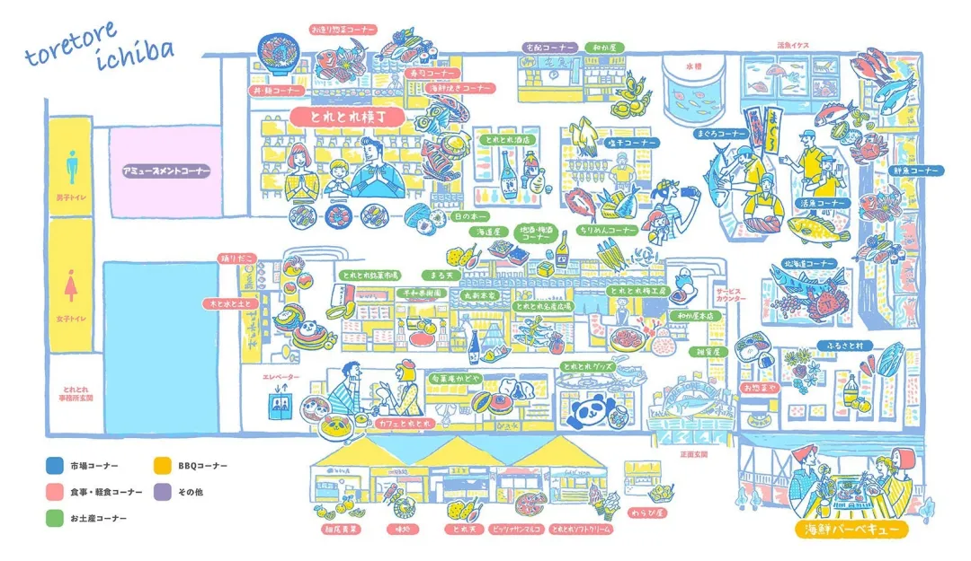 日本全国から集まる新鮮な魚をその場で味わえるほか、和歌山のお土産も充実。さらに、BBQコーナーで海鮮焼きを楽しむこともできます。