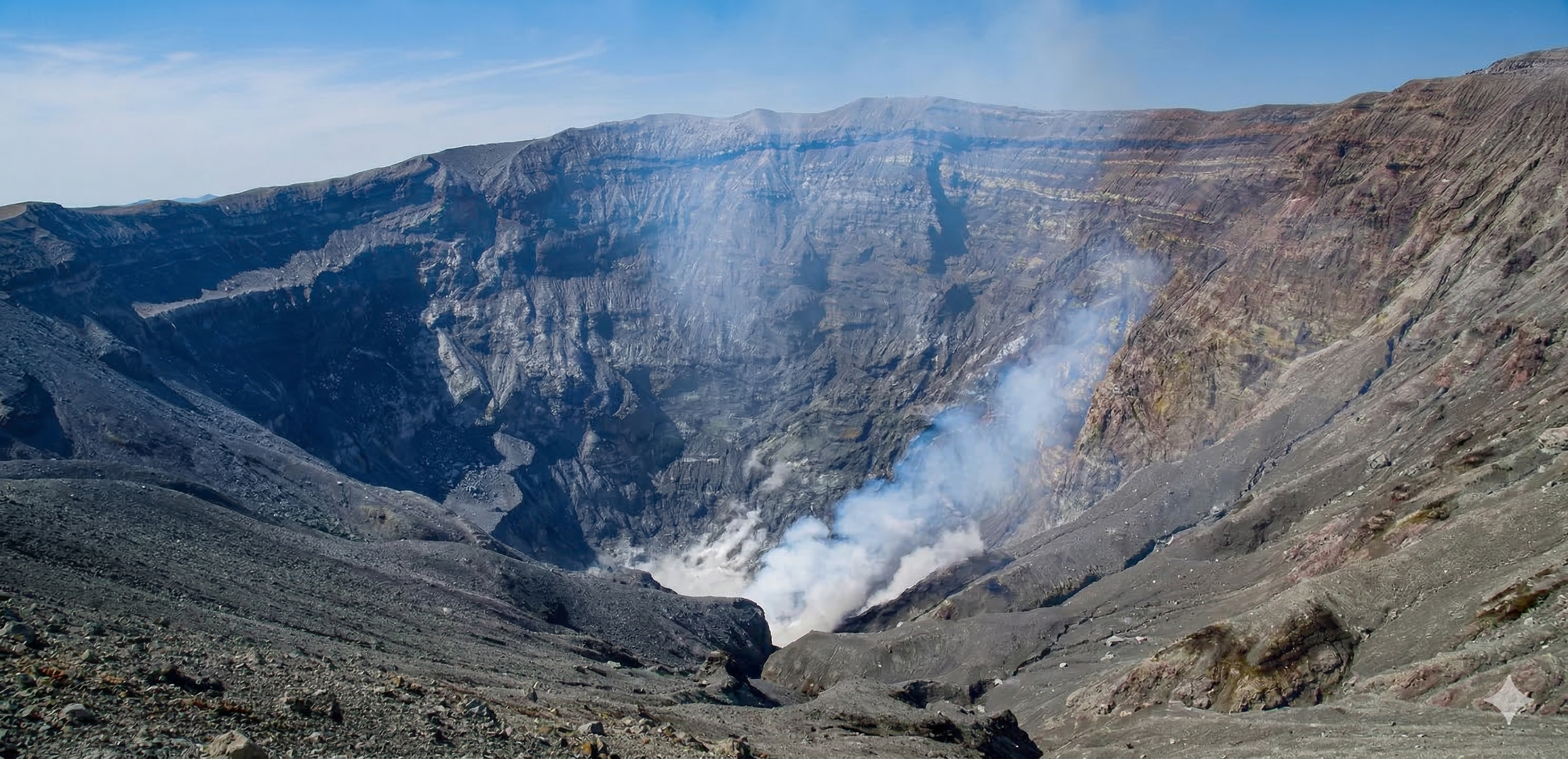 火口見学の可否は、当日の火山ガスの濃度に左右されます。規制状況は事前に予測できませんのでご了承ください。