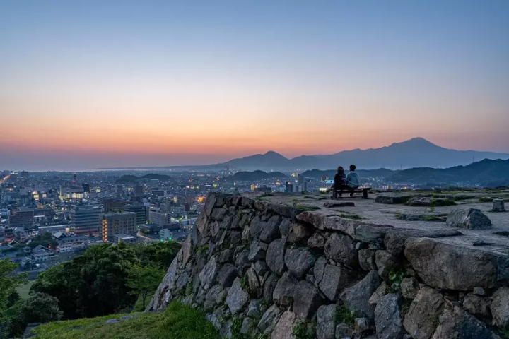 かつて山陰地方で最も有名な城跡のひとつで、四層・五層の天守閣がありました。現在では米子市で最も見晴らしの良いスポットのひとつとなっており、市内を360度一望できます。北を見ると米子市街が広がり、遠くには日本海の雄大な水平線が見えます。西に目を向けると鮮やかな青の中海が広がり、東には名峰・大山の美しい山並みを望めます。