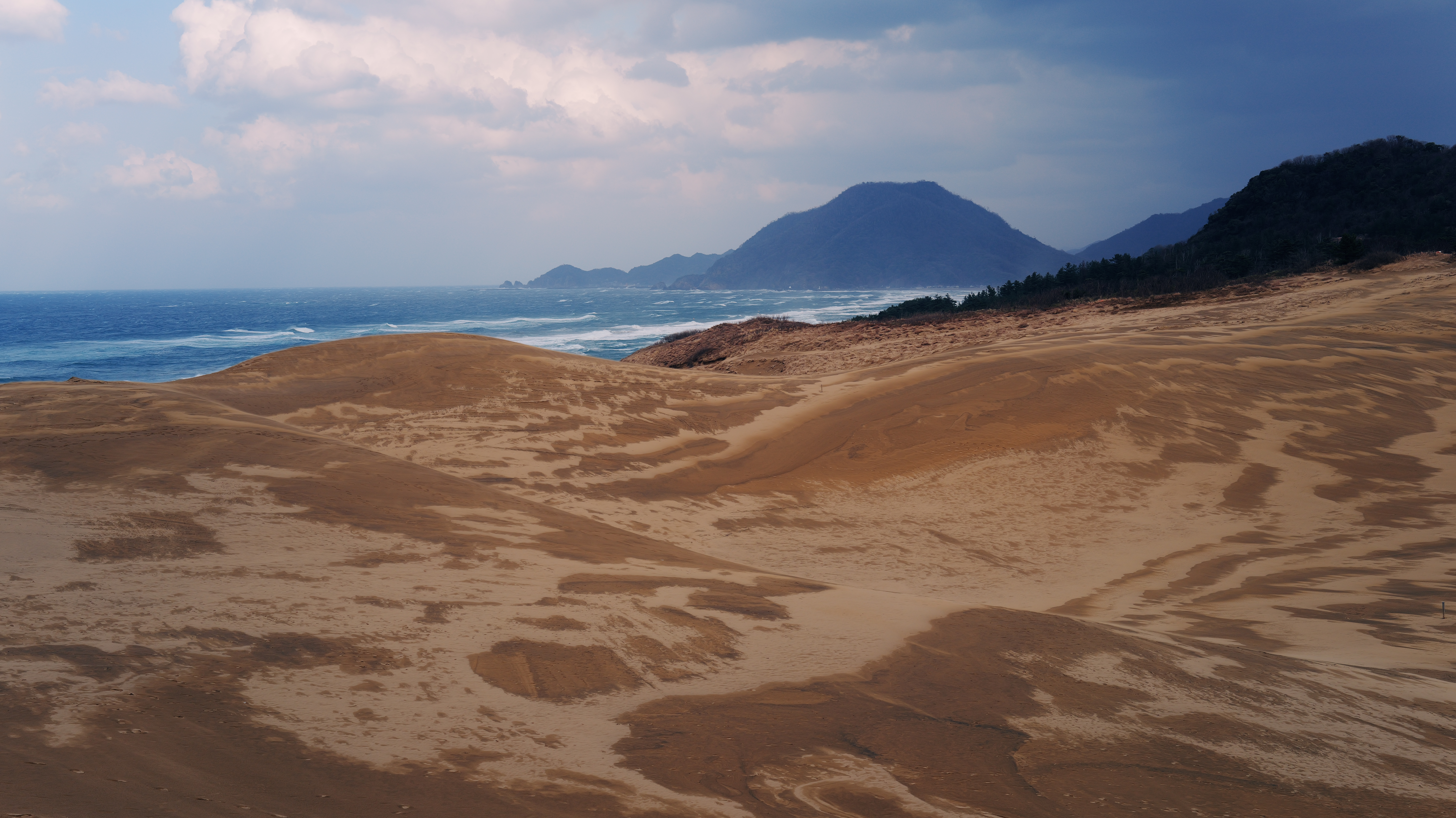 鳥取県鳥取市、日本海側に位置し、東西16km・南北2.4kmに及ぶ日本最大級の砂丘。